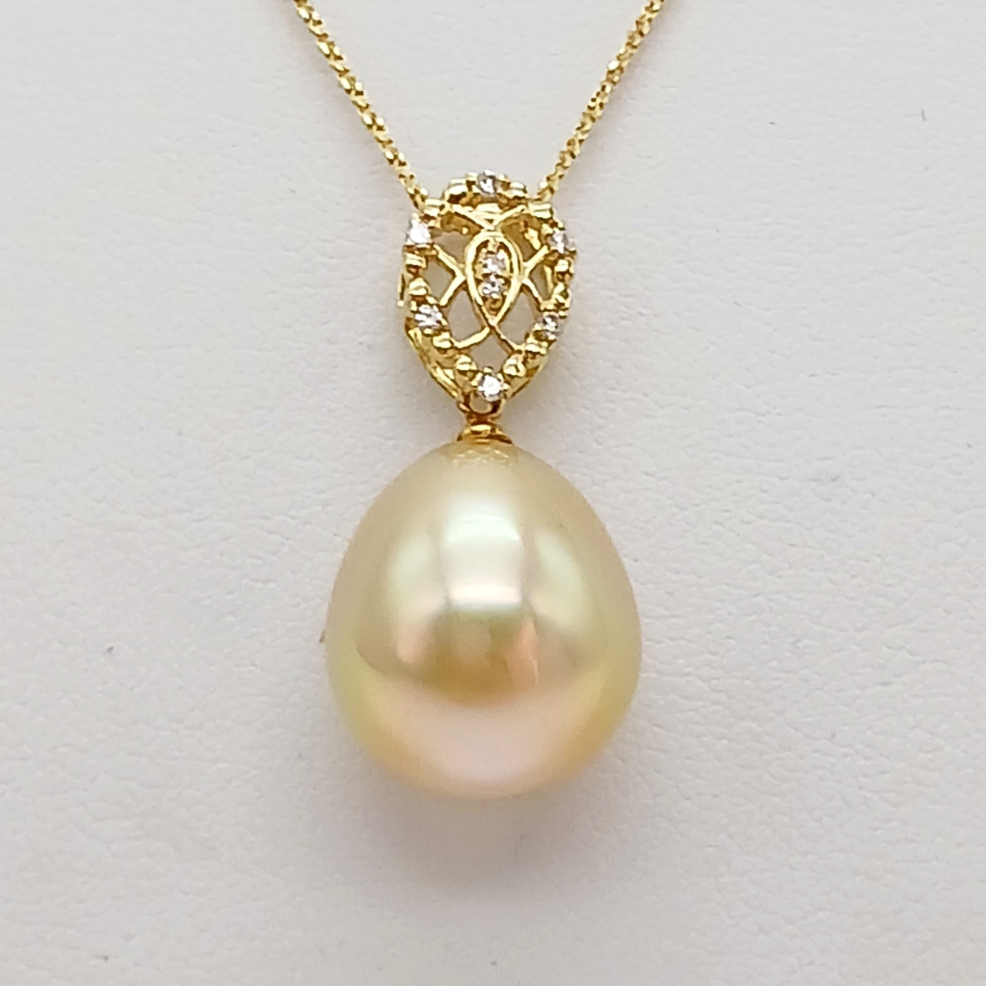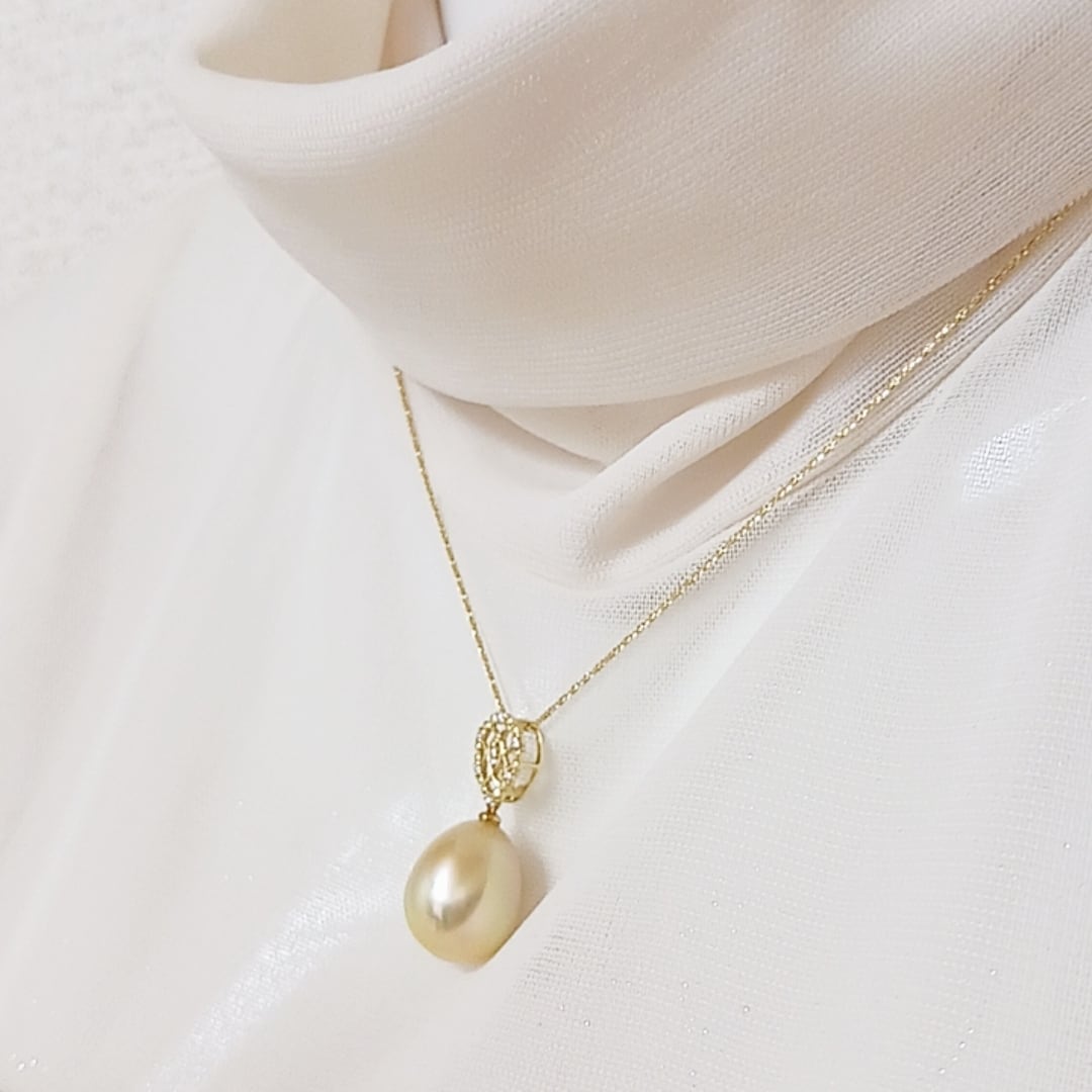 照りの良い雫型南洋白蝶ゴールド真珠のペンダントです。