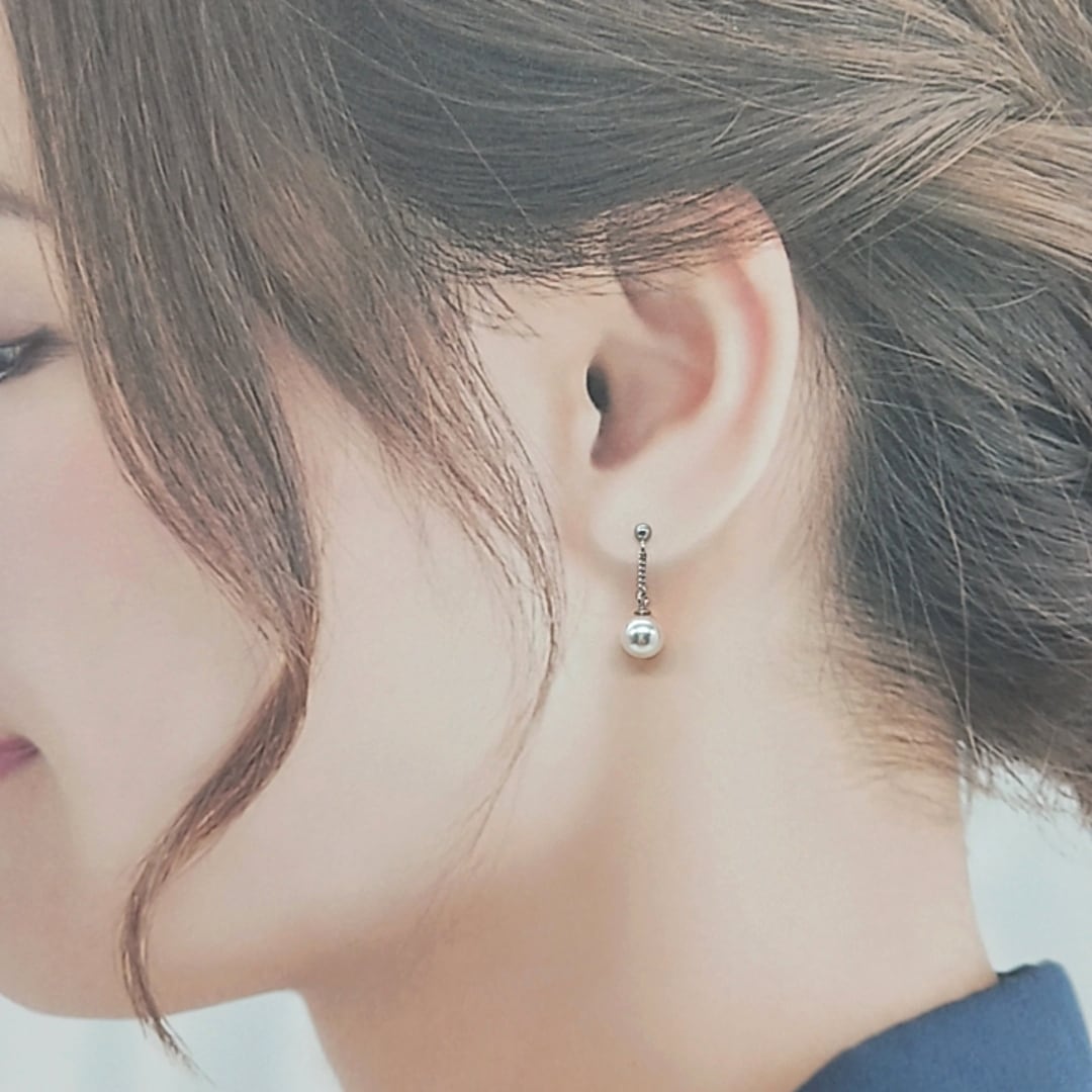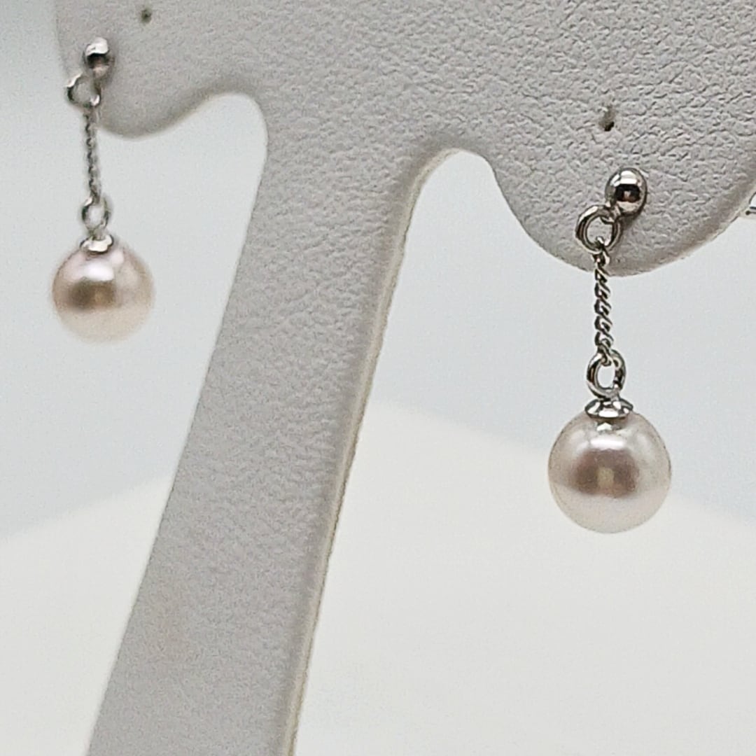 小ぶりなあこや真珠をチェーンでぶら下げた