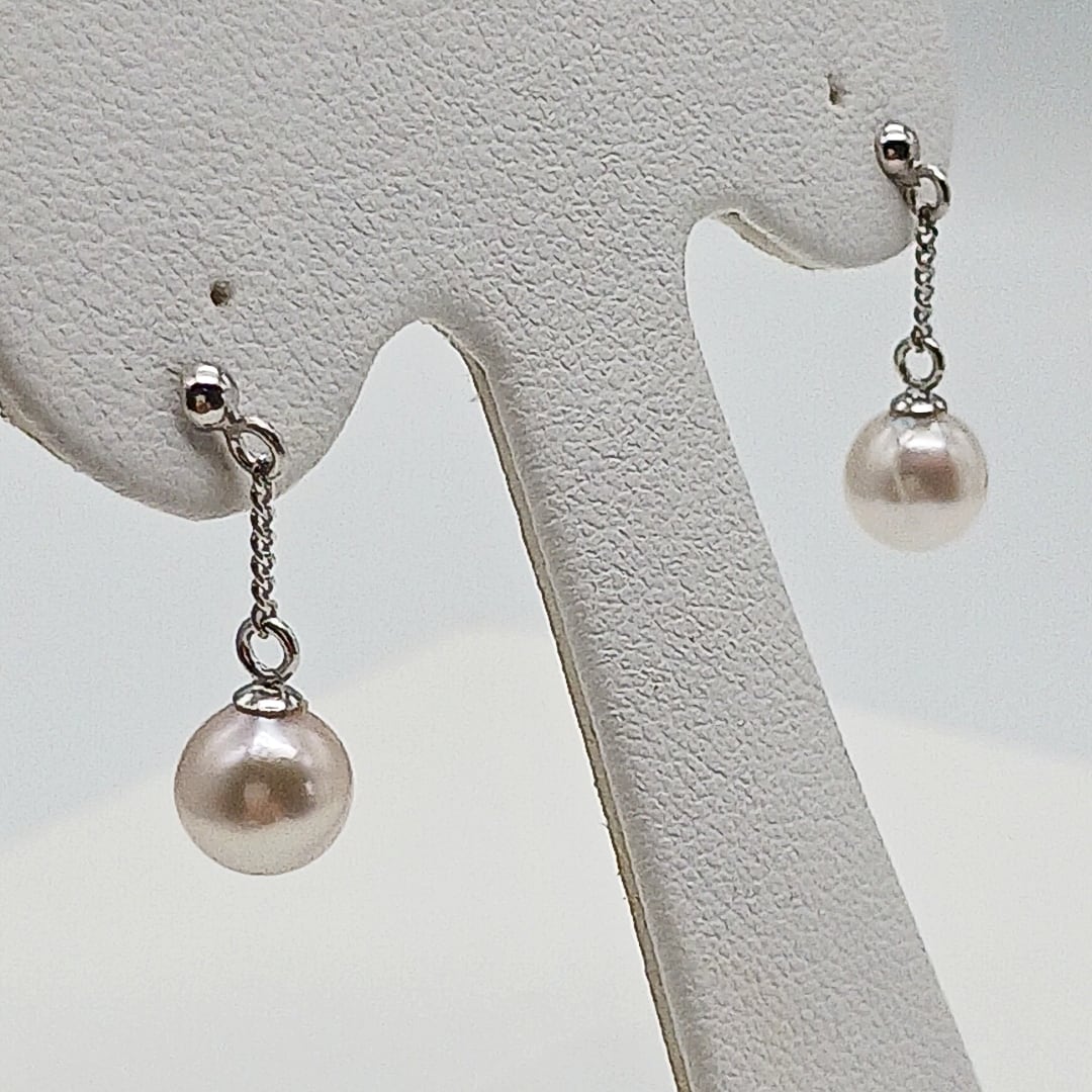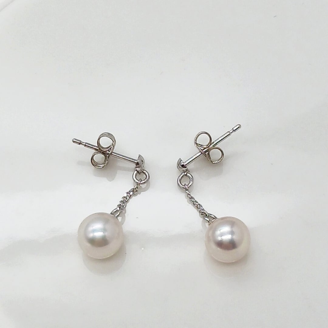 SVあこや真珠ぶら下がりピアス・6、3ミリ珠揺れるパールピアス (商品番号10-488)