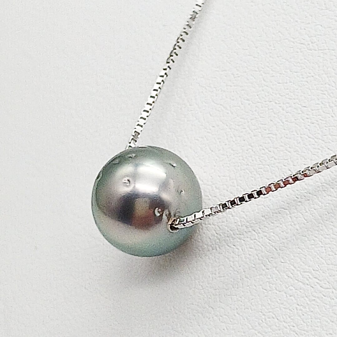 照りの良い南洋黒蝶真珠を1珠チェーンに通した、