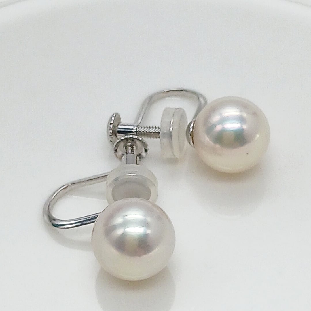 フォーマル用にオススメしたい、照りの良いあこや真珠のイヤリングです。