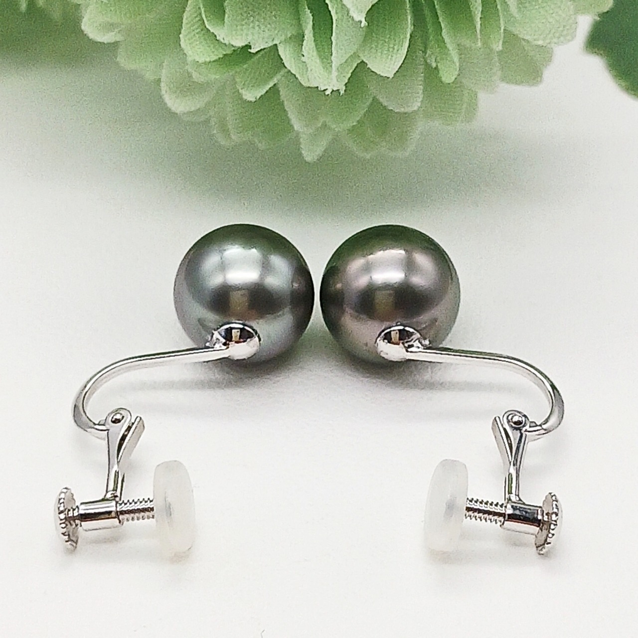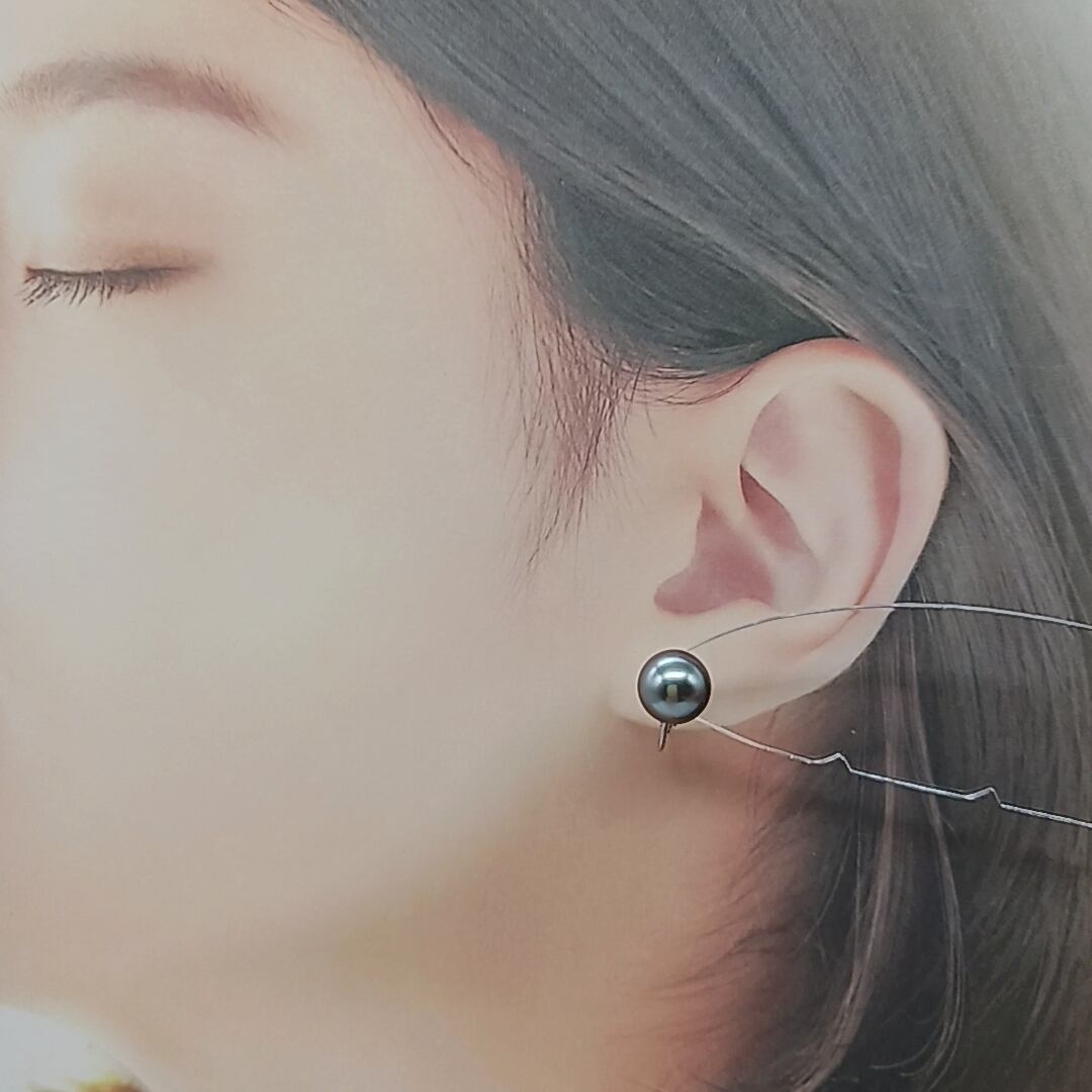 K14WG南洋黒蝶真珠イヤリング・照りの良い9、0ミリ珠(商品番号13-734)