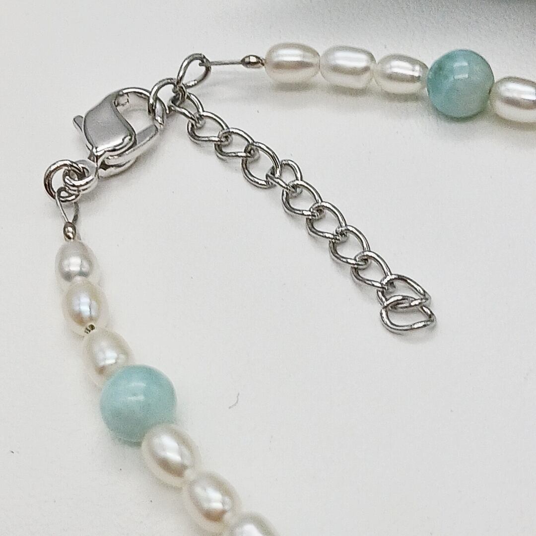 淡水ベビー真珠ブレスレット・ラリマー入り(商品番号12-677)