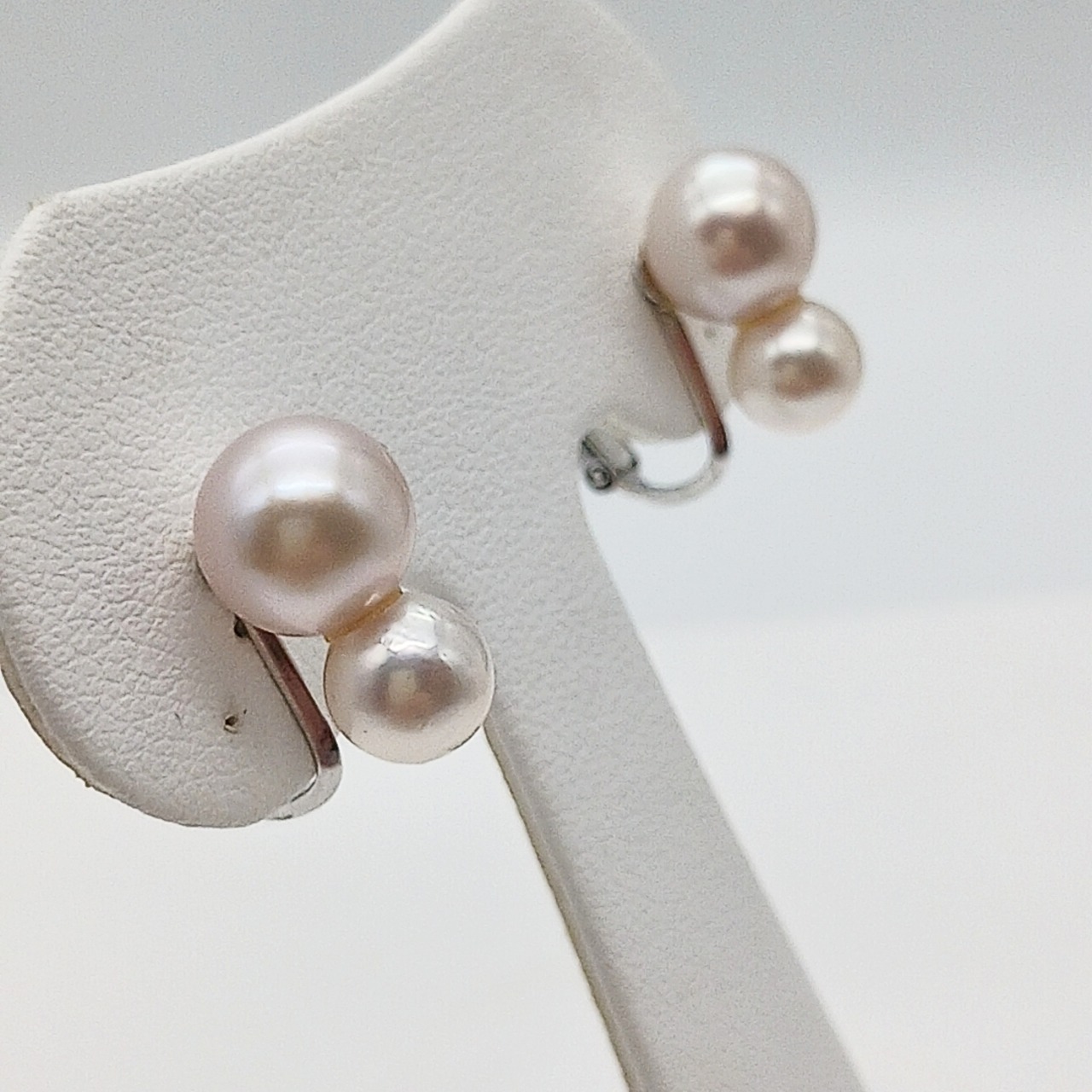 SVあこや真珠ツインイヤリング・淡いピンク系8、6/6、7ミリ(商品番号10-485)