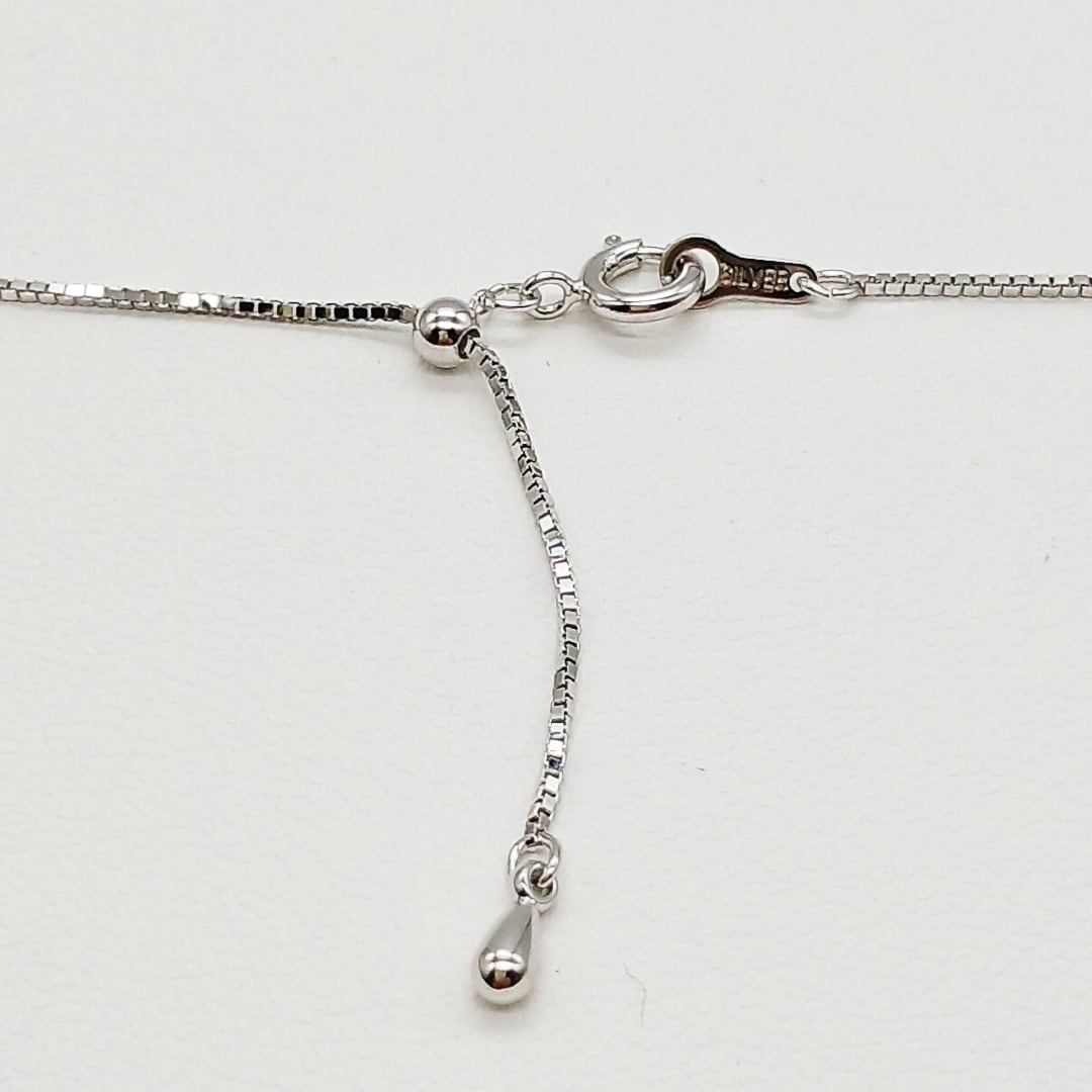 チェーンはロジウムコーティングされたシルバーの0、8ミリベネチアンです。