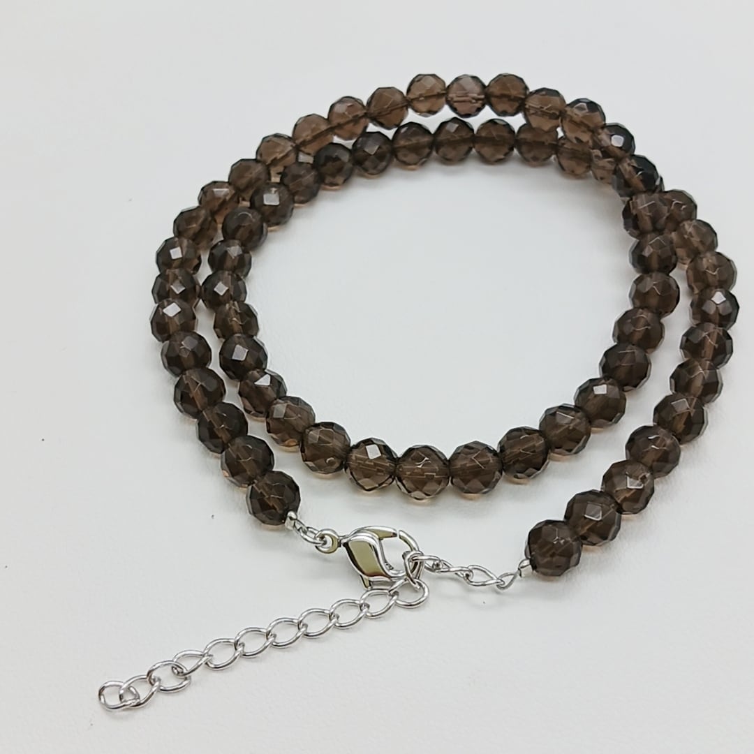 64面カットの6ミリ珠のスモーキークォーツネックレスです。