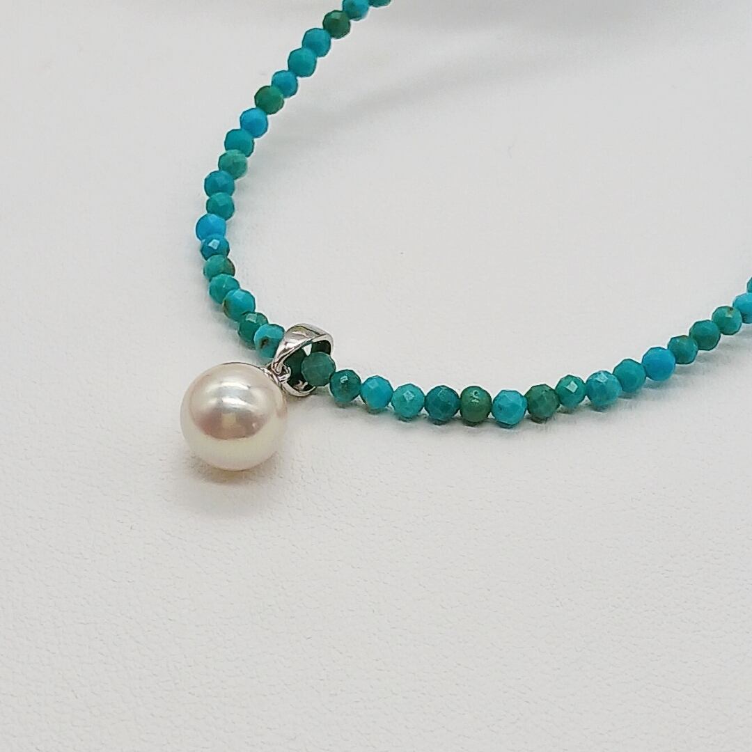 あこや真珠ペンダント(天然ターコイズネックレス付き)(商品番号13-760)