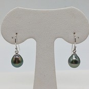 SV雫型南洋黒蝶真珠フックピアス(貫通珠)・横幅8、5ミリ (商品番号13-729)